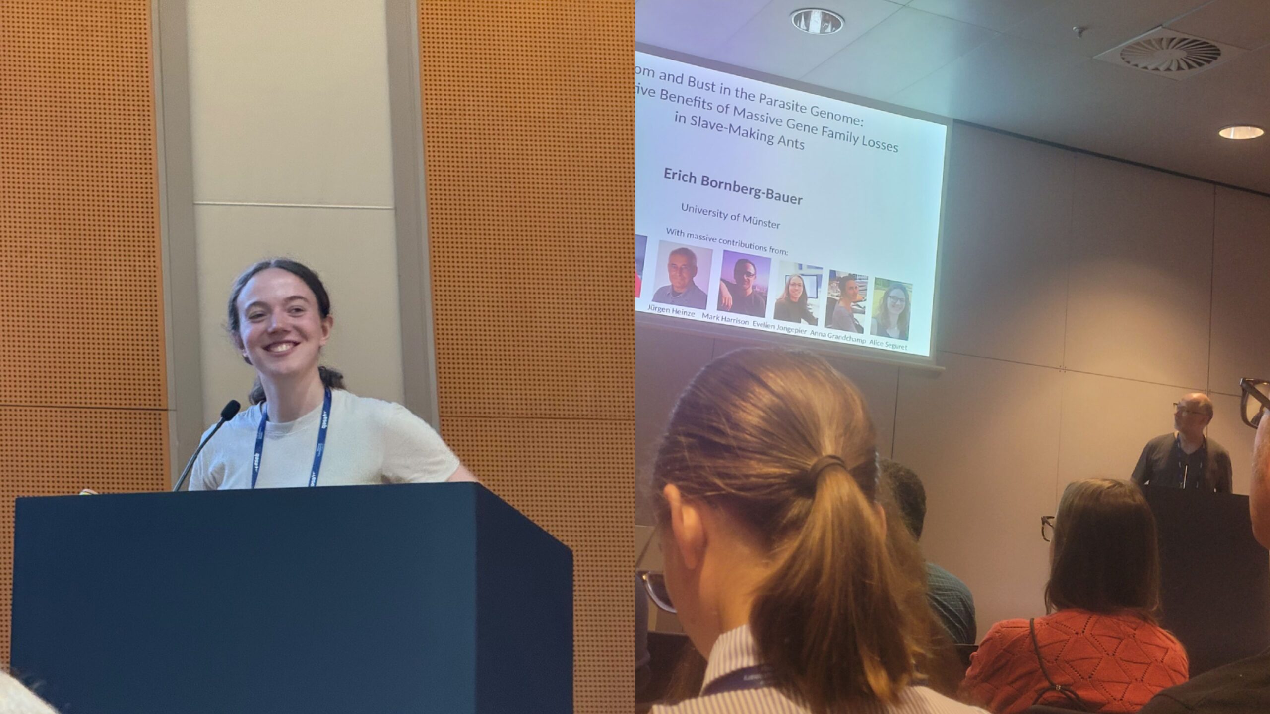 Our postdoc Anna Grandchamp presented her poster on proto-gene emergence and PhD student Alina Mikhailova gave a talk about domain rearrangements in social termites. Awesome work by both of them!